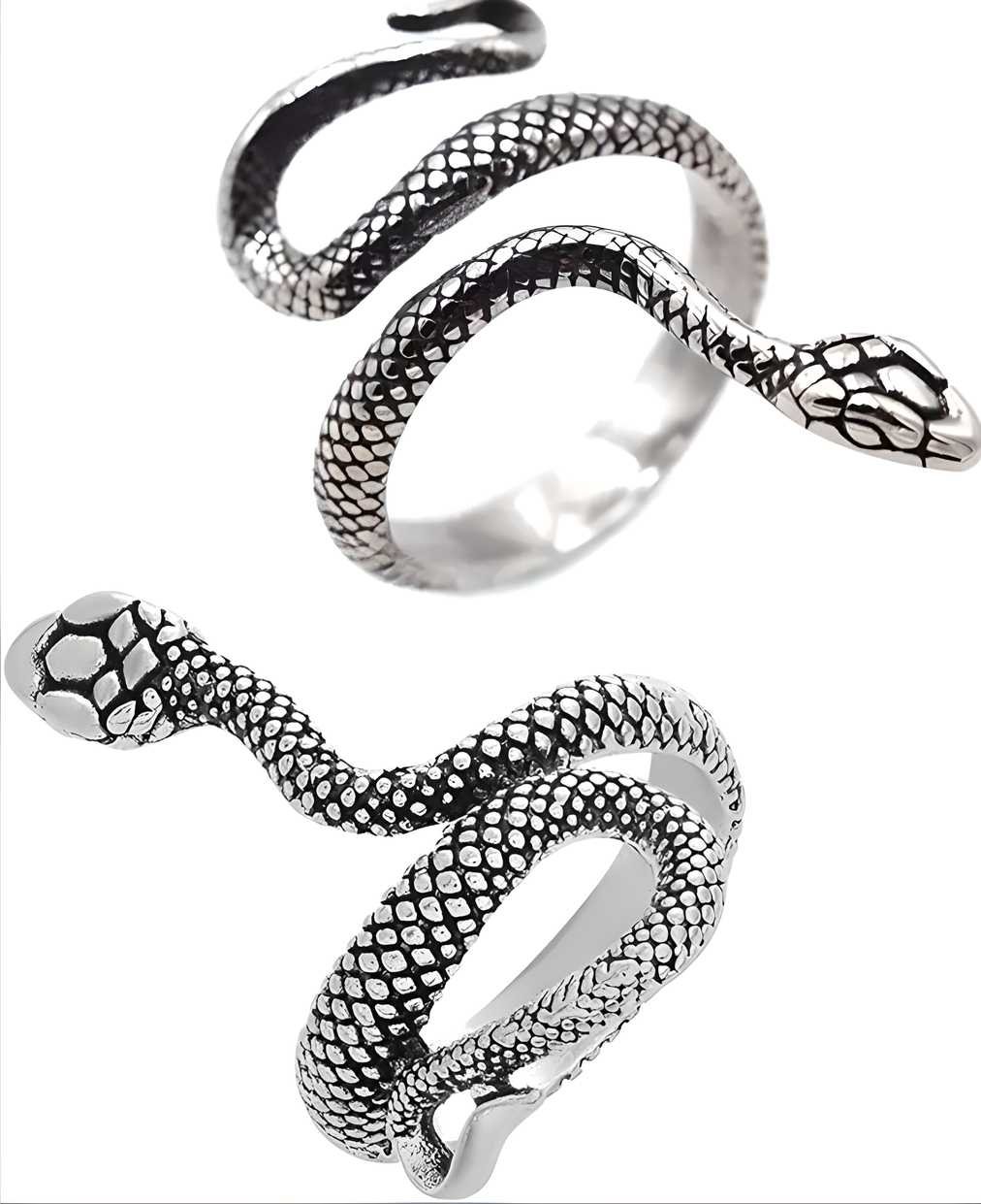 AVR JEWELS Combo of 2 Silver and Black Color Snake Ring For Women and Girls