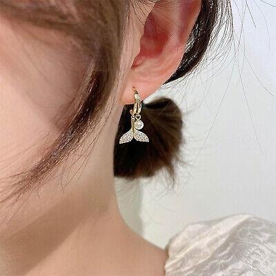 AVR JEWELS Cubic Zirconia Fishtail & Faux Pearl Décor Drop Earrings ( 1 Pair )