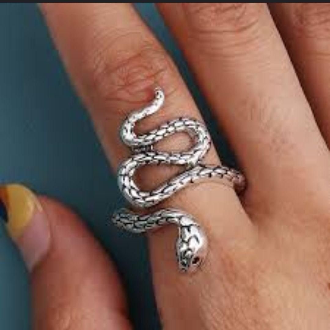 Silver and Black Color Snake Ring For Women